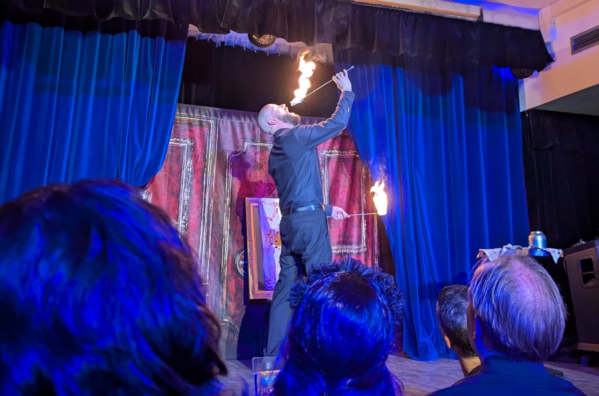 Der Zauberkünstler Attila Karoly machte eine Vorstellung der anderen Art mit dem Titel „The Black Freak Show“ im Kabarett-Theater Sanftwut. Er schluckte vor den Zuschauern sowohl Rasierklingen an einem Faden als auch Feuer. Hämmerte sich Nägel in die Nasen und zeigte den Zuschauern zu guter Letzt, wie er sich eine lange Nadel durch die Hand steckte. Nichts für schwache Nerven, aber es war eine gute und unterhaltsame Show.